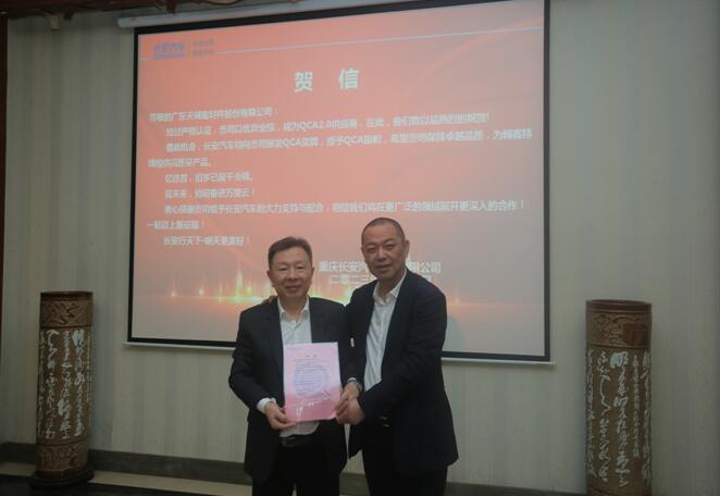 上午9:30交流會正式開始,會上,長安汽車總工程師王波先生向天誠公司頒發(fā)了QCA賀信并對天誠公司發(fā)展表示肯定與勉勵。